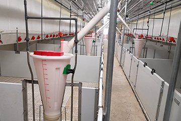 多檔調節(jié)、超大容量、濕拌料設計提高采食量20% 以上,1個喂料器可飼喂40頭100公斤的育肥豬